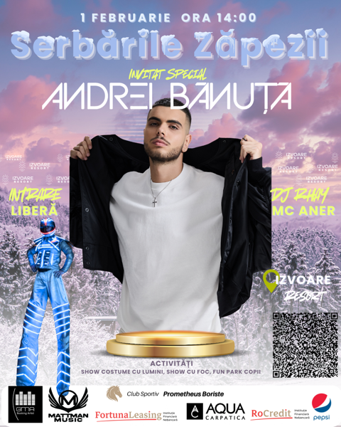 Pe 1 februarie, Izvoare Resort din Maramureș găzduiește prima ediție a „Sărbărilor Zăpezii”, un eveniment dedicat distracției de iarnă pentru întreaga familie, potrivit organizatorilor. Manifestarea începe la ora 14:00 și își propune să devină o tradiție anuală, transformând locația într-un important punct de divertisment sezonier.