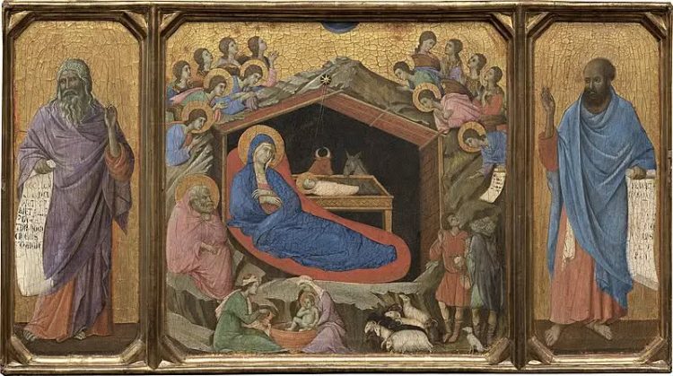 Evangheliile după Matei și Luca relatează că Fecioara Maria, logodită cu Iosif, a născut Pruncul Iisus într-o peșteră săracă din Betleem. Îngerii au vestit acest eveniment păstorilor, iar magii au venit de departe, ghidați de o stea, aducând daruri împărătești.