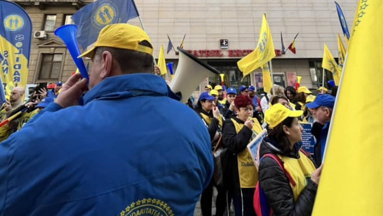 Mii de medici, asistente și infirmieri din întreaga țară au organizat astăzi un protest în fața ministerelor Sănătății și Muncii. Aceștia sunt membri ai Federației Solidaritatea Sanitară și au anunțat că sunt pregătiți să declanșeze greva generală.